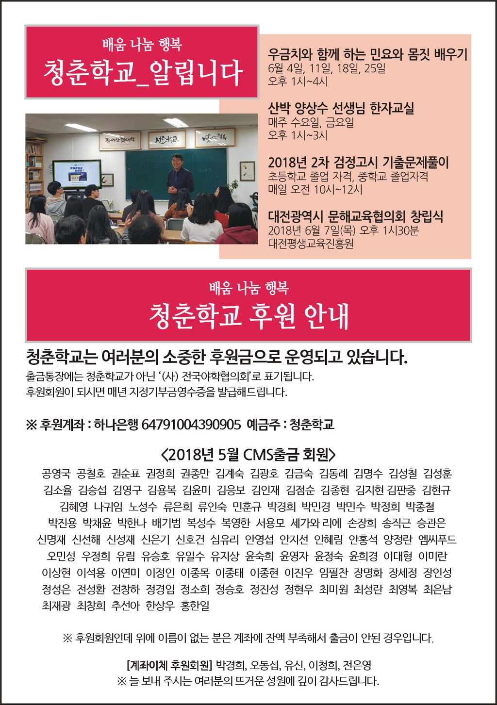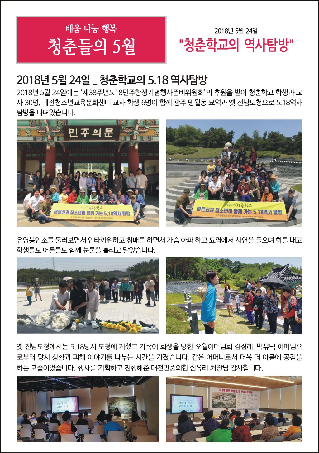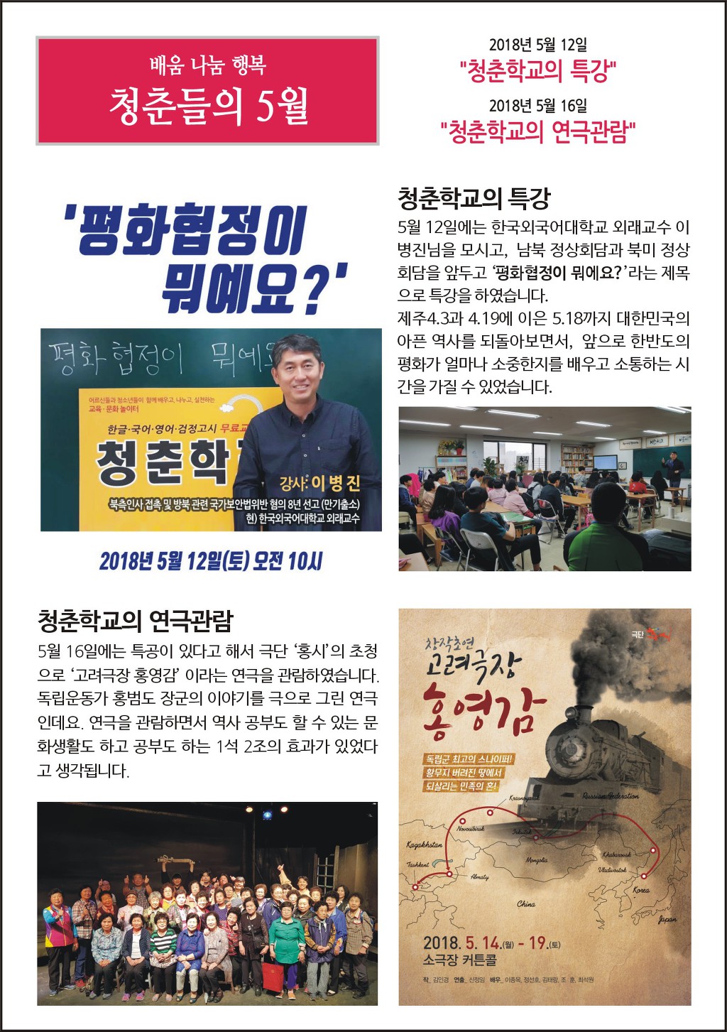 배움 나눔 행복 _ 청춘학교 소식지입니다.