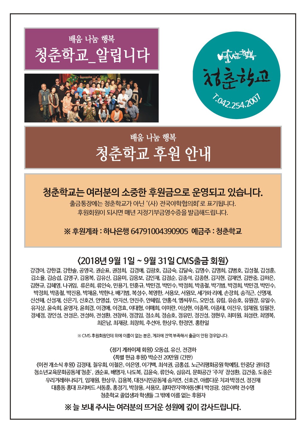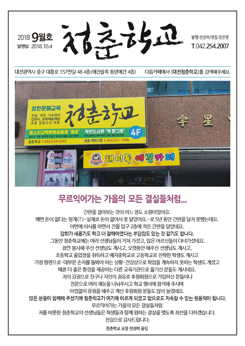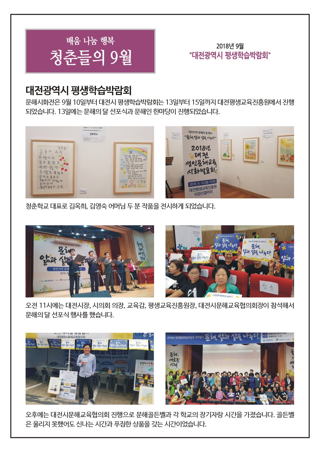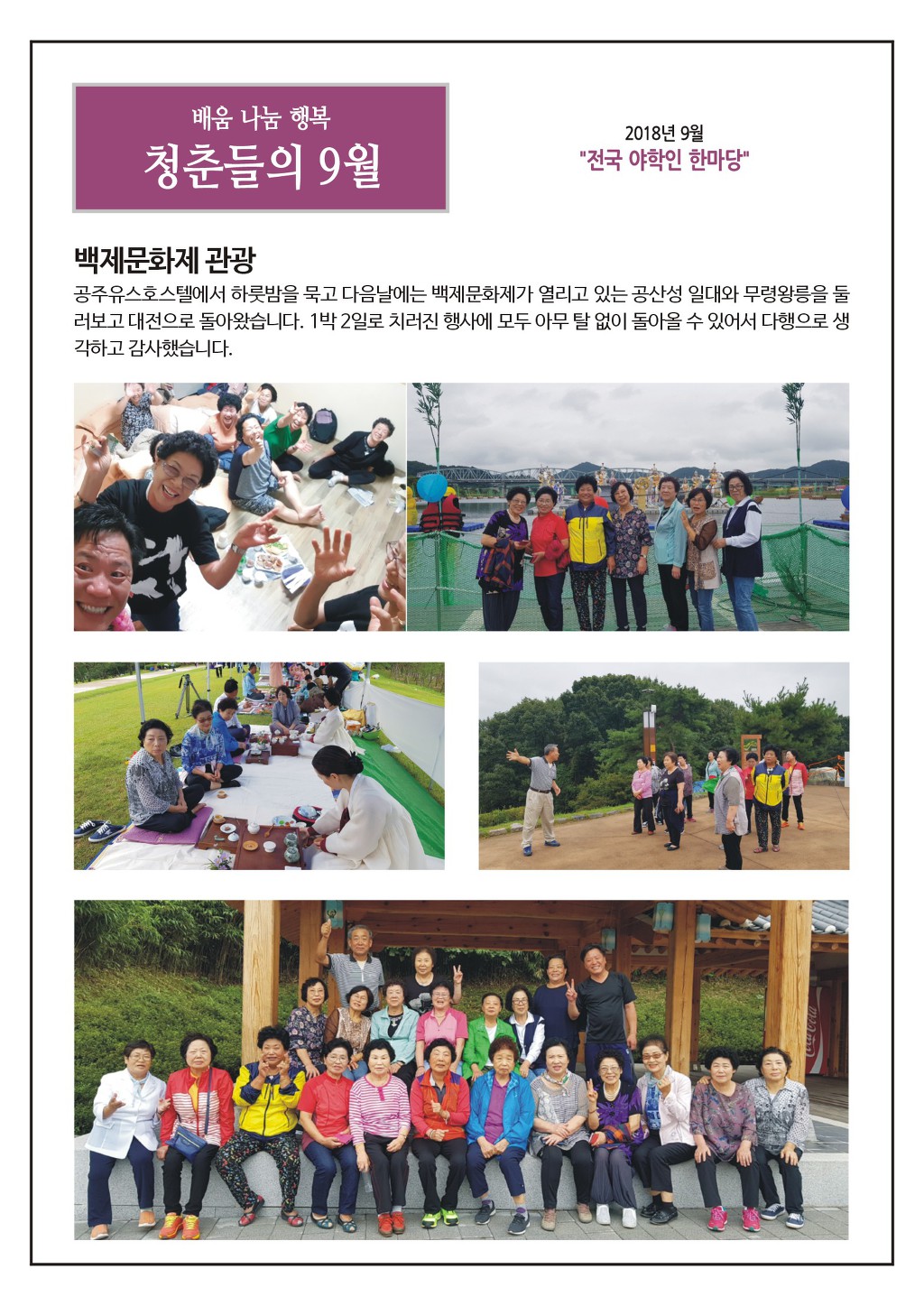 청춘학교 2018년 9월 소식지입니다