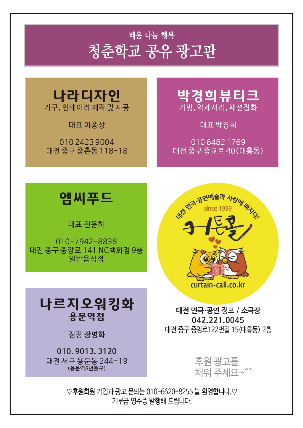 (34925) 대전광역시 중구 대흥로 157번길 48 4층(대흥동) 청춘학교
