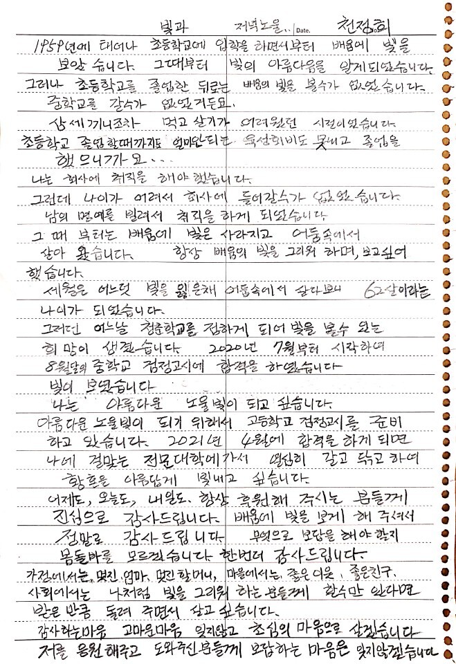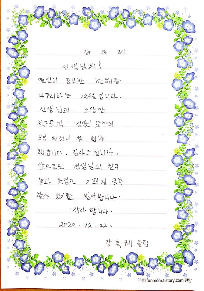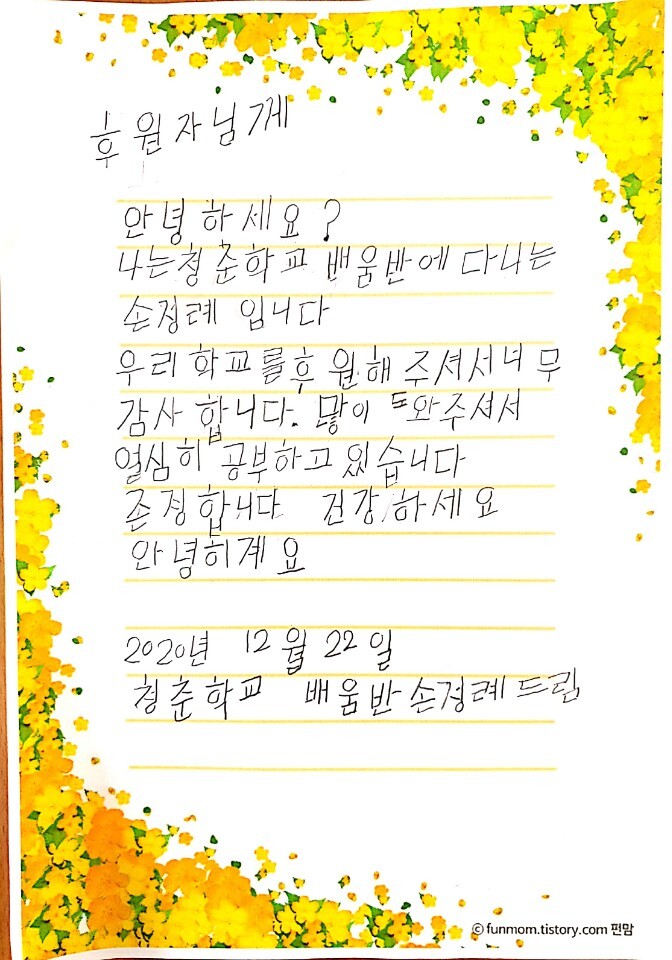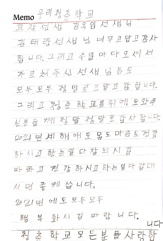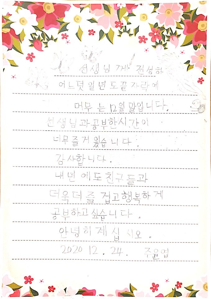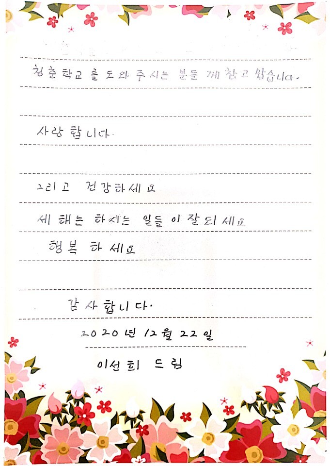 2020년을 보내며 _ 청춘학교 어르신들의 감사편지